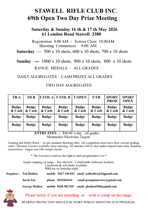 - STAWELL RIFLE CLUB - 69th Open Two Day Prize Meeting (2)