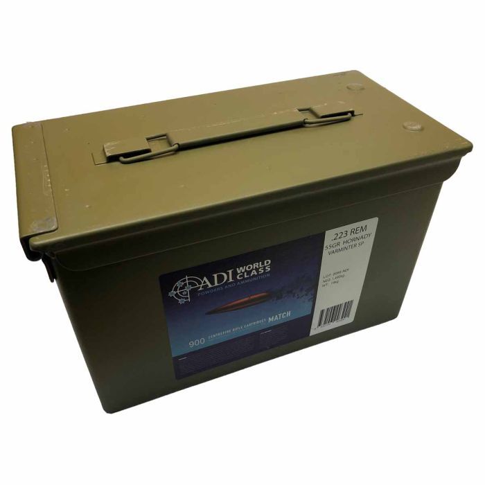 AMMO ADI 223 55gr HORNADY SP (900 ROUND TIN)