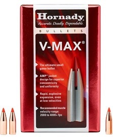 With its combination of proven materials, iovative design and streamlined profile, the Hornady® V-MAX® represents the piacle of what a specialized varmint bullet can achieve, offering straight-line trajectories, enhanced accuracy, dramatic expansion and explosive fragmentation at a wide range of distances and velocities.