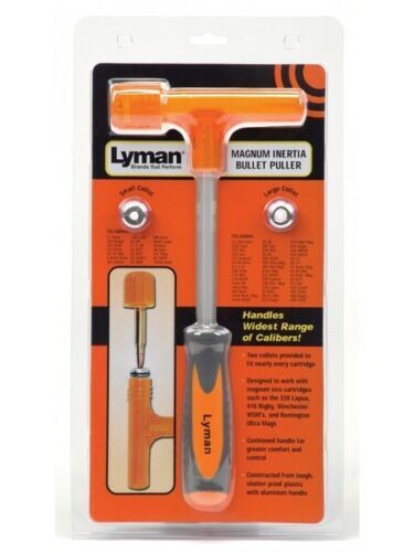 The Lyman inertia bullet puller safely strips loaded rounds in seconds without damage to bullet or case. It features a newly engineered head design that allows use on a full range of calibres from the tiny 5.7 X 28FN to the largest of Magnums.