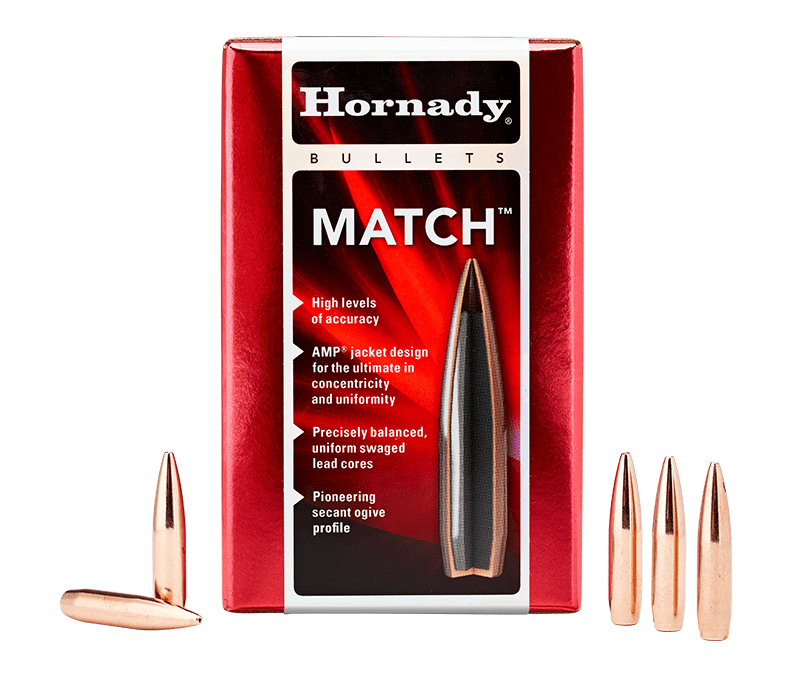 All Hornady® Match™ bullets feature revolutionary AMP® (Advanced Manufacturing Process) bullet jackets. Developed by Hornady® engineers, these bullet jackets are a technological advancement in design, tooling and manufacturing that combine to produce the most consistently concentric bullet jackets available. These proven AMP® jackets are the foundation for exceptional bullet accuracy and have virtually zero runout and near zero wall thickness variation. Coupled with precision swaged cores and manufactured to the tightest standards in the industry, all Hornady® Match™ bullets provide superior consistency, high ballistic coefficients and unprecedented levels of accuracy.