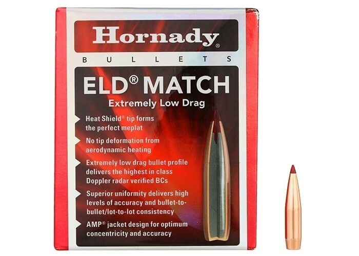 ELD® Match (Extremely Low Drag Match) bullets are technologically advanced, enhanced accuracy target bullets featuring Heat Shield® tips with the PERFECT MEPLAT (tip point) combined with numerous design features that deliver the highest-in-class ballistic coefficients, superior accuracy and extreme consistency from bullet to bullet, lot to lot.